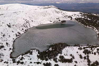 Estas lagunas de origen glaciar, situadas en la Sierra de la Demanda, se transforman en invierno en un paisaje helado, rodeado de nieve, silencio y pinos silvestres. Desde el aire se pueden apreciar sus formas únicas, los miradores que rodean el parque y la impactante belleza natural que ofrece este espacio protegido.